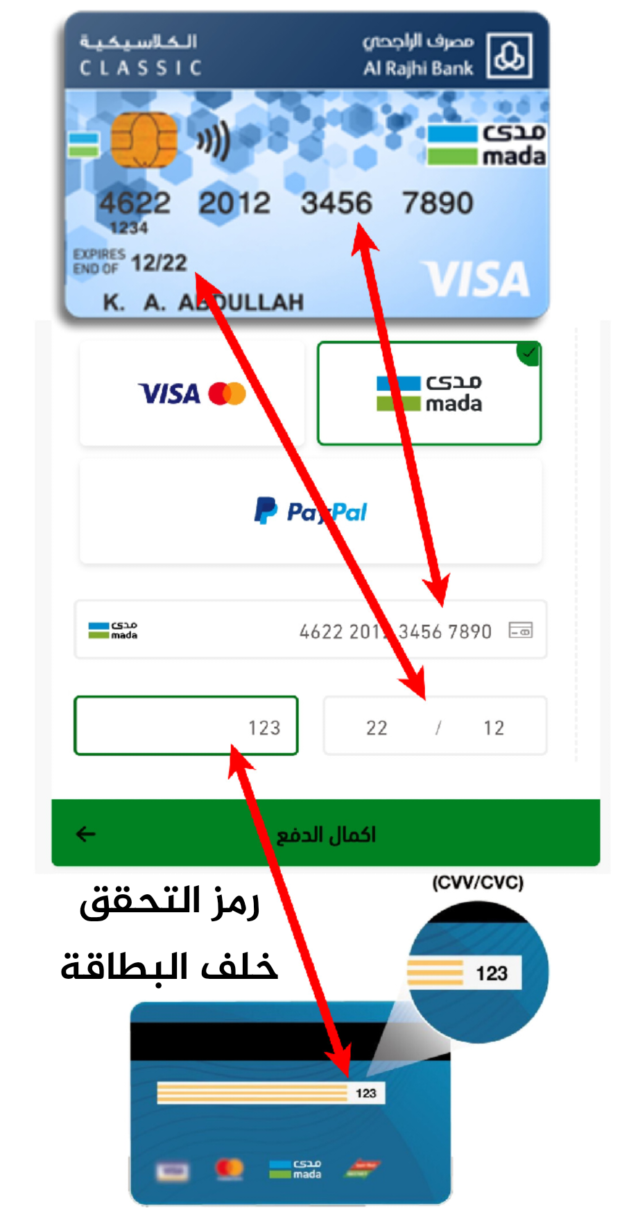 4- إدخال معلومات بطاقة الصراف (مدى)